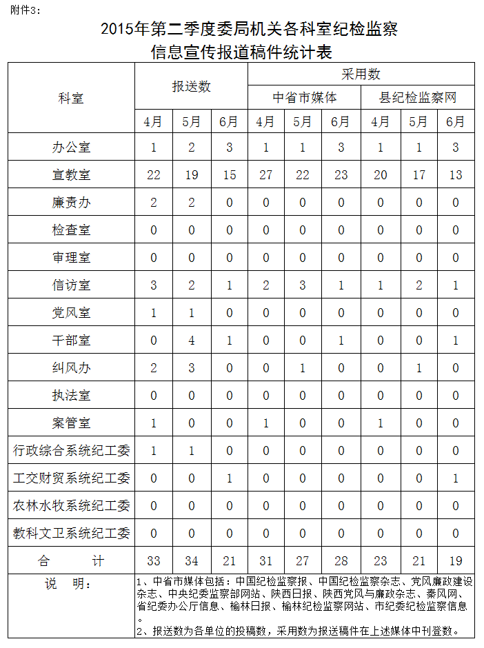 关于2015年第二季度全县纪检监察信息报送和采用情况的通报(4)